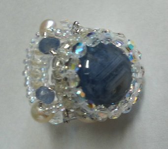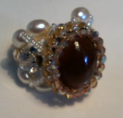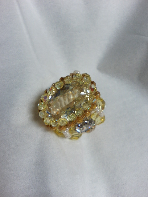 かなり透明度の高いルースだったんですけど、色が、思っていたよりうすくって、しかも、私的には、ビーズで包めるほど大きさが無いような気がして、使わなかったので、忘れ去っていました。でも、昨日、思い出して、よーく見たら、デザインを思いついちゃったので、早速、完成させてしまいました。今までの周りだけ囲む作り方プラス脇にちょっとムーンストーンの○ルースで、飾り編を付けたら、んーーー 少し雰囲気が変わったかもしれない・・と自己満足しています。小さなルースの時はこんなのも有りかなーなんだか、だんだん、作り方が変って行って、前に作った物が、気に入らなくなってきちゃいました。でも、作りなおすのは自分だから、気が楽かなー。このリング、ビーズのなかをテグスで5~6回通さなければならないので、1号のテグスを使っています。細いので。扱いがタイヘン