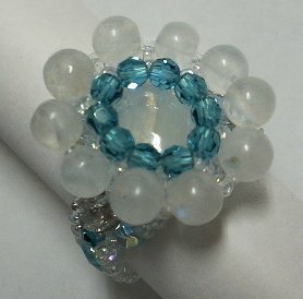 ちょっとかわいいでしょう?ブルームーンストーンをブルームーンストーンで囲んだ、お花のようなリング。プレゼント用に作ったのだけれど、アップしてしまいました。そういえば、弟に頼まれて、お友達の奥様に、スタールビー(透明感は無し)で作ったリングをプレゼントしたら、すっごく気に入って毎日着けて下さっているとの事。嬉しいーーーーー♪最近、プレッシャスビーズの金タイプ、ほとんど使わなくなりました。なぜって、長く身に着けていると、特に指輪の場合、はげてしまうからです。綺麗で高級感があって良いのに、ガッカリ・・・・・・・はげないメッキビーズってないのかしらーーー