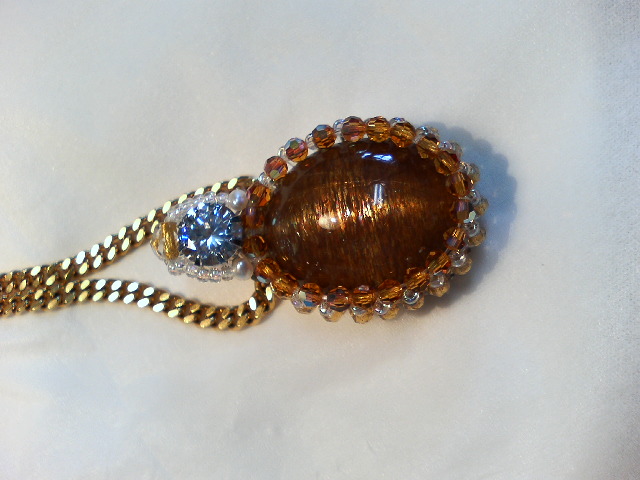 随分前に〔10数年〕マイ、ダーリンが会社の慰安旅行に行って来た時のおみやげのアメジストのネックレス・・・・・・捨てられないけど、使えない・・・・・・なので、リフォームを決行。間にピンクの淡水パールをはさんで、色々と加工して、見事復活皆からも、かわいいねと言われました。こちらは、スペクトロライトキャッツアイを5000番スワロパーガンディー6mmやシルバーシャドウ5000番3mmでフレーミングして、お気に入りのリングに仕立て上げました。毎日アタフタしているうちに、今年も終わってしまいそうで、ちょっと焦り気味です。んーーーーーのんびりと、ディズニーにでも行って遊んで来たいなー 夢です。