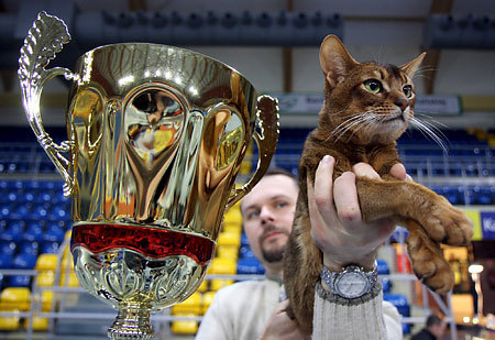 「最も美しいネコ」 の座を得てご満悦のアビシニアン。