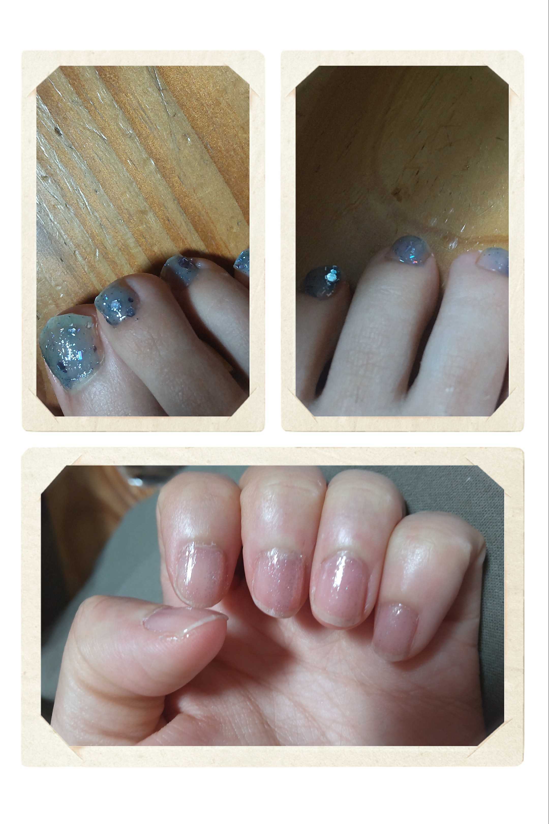 前のお店に居た頃、ネイルをしてくる同僚がいて、ネイルスイッチが入ったわたし👩わたしもネイルして行きたいって、単純に思いました😊ある意味、価値観が変わりました😁オシャレでいいなぁって🎀特にド派手なもの&凝ったものはしていかないつもり。自分の爪を生かして、ズボラでも楽しくできるのがいいので、セルフネイルで💅初心者ゆえ、まだまだ勉強が必要です🔰上の写真。大きめなラメがキラキラを発揮できていない。2度塗り、3度塗りすれば良かったかな。下の写真。塗ったか塗ってないかわからないみたいな感じになった(^_^;)一応、トップコートは塗ってます。今日のネイルはこちら↓100円ショップで買ったネイルシール(ショート)を貼った💅パッと見、貼ったとは思えない✨ネイルシールの良いところは、すぐ貼れるところ、貼り直しもしやすいところ、匂いがしないところ⭕️一方で、大きさが合わなかったり手を洗ったりすると剥がれやすい(^_^;)まぁ、1日限定と思って使うようにしてます。どうしても、爪の大きさに合わないものもあるので、ハサミで切って調節。フットのネイルは、フット用のジェルネイルシールを使いました👣今回は、2種類のジェルネイルシールを有効活用。少し前にそれぞれのジェルネイルシールを使って余ったもの。どうしても余っちゃうし、もったいない。けど、もちろん全部の爪にピッタリ合うように残っていないので、爪の大きさに合わせてハサミでカット✂️このジェルネイルシールは、比較的取れにくい⭕️サンダル履きが多いので、足元もちょっと華やかにいきたいよねo(*゚∀゚*)o
