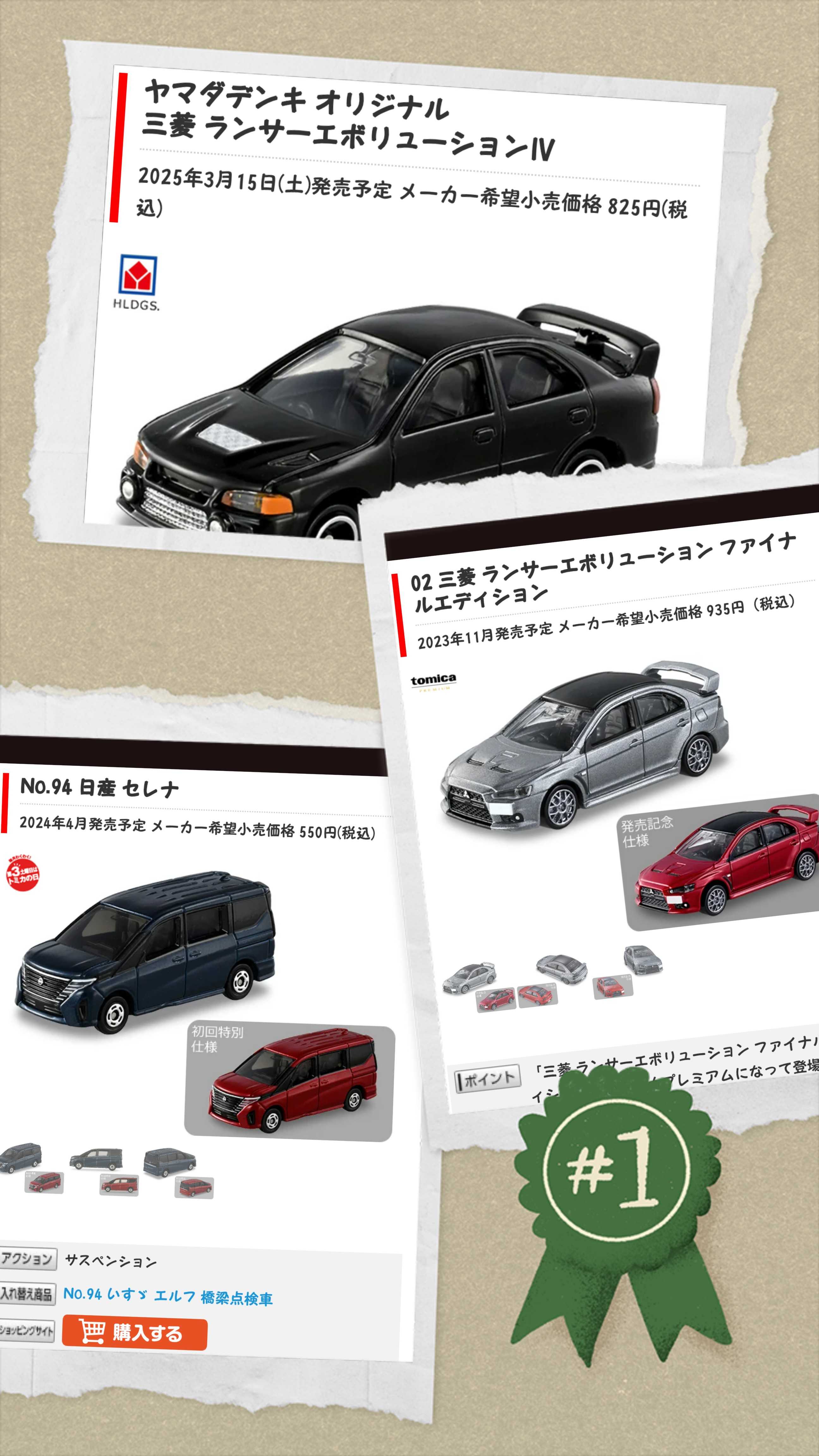 トミカを見に、近くの書店に行きました。トミカコーナーは、子どもの玩具売場ではなく、ホビー雑誌売場付近にあるのね。観察🔍️リラックマ🧸やスヌーピーのトミカ🐶はたらく自動車系🚒🚑️日産 エクストレイル日産 セレナ日産のカッコいいクルマアルファード…他にも、いろいろ🚙日産車に乗ってるから、日産が気になりますね✨気になるものはあったものの、購入は見送り。第1回目の観察は、終了。…棚の上から下までじーっと見てを繰り返す35歳オンナ👩ちょっと異様ですよね、うん(^_^;)けど、トミカが気になる35歳オンナなんでね😃帰宅して、取り扱い店をネットで検索。トイザらス、ドン・キホーテ、書店、家電量販店、コンビニ、イオン…。田舎なのでどのくらいあるかわからないけど、あたってみたいと思います✨トイザらスのネットショップ見たら、ランエボ+大きいトラック(ランエボを収納できる)のセットがあったり、いろんなクルマがありました。実店舗で見てこそ、探究なのよね🎵行けるときに、行ってみようと思います☺️