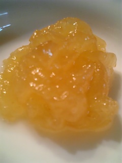 りんごを大量買いしたら、やっぱり欠かせないのがジャム作り! 酸味の強い紅玉で作るのが一番だけど 冷蔵庫に眠ってる、きおうを使いました! 用意するもの りんご 400g(皮と芯を取ったもの) 砂糖 りんごの30%(この場合、120g) 水 50cc レモン汁 半個分 作り方 1) スライスしたりんごと水、お砂糖を火にかける 2) りんごから水分が出るので、煮詰めてゆく 3) 水分が抜け、りんごが半透明になったら、レモン汁を入れる (りんごの糖度が高い場合は、レモン1個分でも良い) 4) ひと煮立ちしたら・・・できあがり! とても簡単なので、夕飯の仕度をしながらできます ちょっとゆるめのシロップたっぷりだと、水分量を多めに 長期保存でで固めの場合は、水分を飛ばして、お砂糖多めに・・・ 果物の30%位のお砂糖量がジャムの目安だけど お好みの甘さで作ってみて・・・