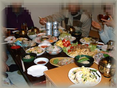 今日は両家のジジババ招待してのモコの初節句のパーティーをしました。あいにくの雨で大変だったけど。。。私の行事っていつも雨です;;覚えているのはまず中学の卒業式の大雪に始まり、成人式の大雪(交通機関マヒするくらいの)、結納の日の雨、結婚式の大雨(嵐のようでした・・)、別の日にやった2次会の雨&ミゾレです^^;招待した方々には大変申し訳なかったです~。。。そして今日も雨。。。。でもでもとっても楽しい会でしたよ^^;お料理は・・・五目寿司・うしお汁・から揚げ&ポテト・たらの芽の天ぷら・ネギチャーシュー・白菜のロール・お刺身盛り合わせ・ごぼうサラダ・生春巻き・フルーツ盛り合わせ・桜餅って感じです。母と妹に手伝ってもらって頑張っちゃいました!私が主に作ったのは、から揚げと生春巻きですが^^;母にはたくさん作ってもらっちゃいました。そして昨日に引き続き妹様様です!!きっと一人じゃ半分もできなかったかも。実家が近いってすばらしい!!!!!モコは途中で眠くなり退散・・・。でもごきげんでニコニコしていました。義母と義父は初めてうちへ来たんで少し緊張しましたけど^^;次の行事は誕生日ですかね~☆そんときもママは頑張っちゃいますよ!!皆さんも、初節句頑張ってくださいね~^^