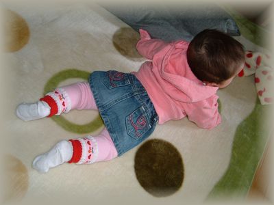 今日は風が強くて大変でした。友達のうちへ遊びに行ったんですが、途中ベビーカーの屋根が外れてしまい悲しかったです年末に買ったダディオダディの福袋に入っていた服が着れる様になりました先月は確実に大きくてすぐ脱がせてしまったんですが、今日着せてみたら袖は長いけどなんかサマになっていました相変わらず体重は少ないおチビなモコだけど成長してるんだな~デニムのスカート穿かせてるんですが、おまた丸見えまだまだレディーには程遠いモコでした昨日あたりから背中側の左肋骨下あたりが痛いんです・・なんだろう。。添い乳してると結構痛い今日は夜泣き勘弁して欲しいなあ・・・