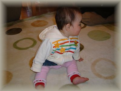 最近全然モコのこと書いてなかったなあお買い得情報が多すぎて、毎日パソコンとにらめっこですそこで今日はモコのこと書いてみたと思います。先日の風邪がまだまだ治りきってないモコです。(ちなみに鼻水って上手に吸えますか???)最近つかまり立ちができるようになりました。最近足癖悪くてカバーオールの足のホックの隙間から足出してます朝方なんて両足丸出しで寝てるんです・・。そろそろパジャマはパンツにしたほうがいいのかな話がそれてしまいました最初はラックにもたれるように乗っかっていたんですが、ここ何日かでソファーでもテーブルでも両手でスクっと立ち上がってます。でもでも・・・転びすぎーーーーーー気をつけて見てはいるんですが、ちょっとの隙にダーーーンて・・・。旦那さんも「頭が悪くなったら・・。」と心配気味やっぱりクッション材ひいたほうがいいのかな?テーブルは一応クッションみたいのつけたんですが・・。モコ、一週間前は全然立てなかったのに、すごいな~子供ってホント成長が早いですね。しみじみしちゃいますね