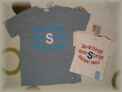 先日のセラフ・・撃沈いたしました残念で。不完全燃焼で、ショップに行き買っちゃいました先日のセラフ福袋でママサイズがあると知り、何気にみてたらあったんですよ。Tシャツなんだけど、普通に着れそうだし、しかもモコとオソロが出来る~まったくのオソロはちょっと気恥ずかしいので色違いにしました。ママ用、キッズ三色ずつあってどれも可愛かったですバックにもあります。今年の夏はオソロで親馬鹿全開でいきます