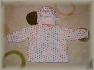 今日は午前中に暇だったんでGAPに行ってみました。そしたら超~可愛いウインドブレーカー発見サイズは80にしました。店員さんは大きめで長く・・と言ったんですが90じゃ袖も丈も大きすぎて可愛くないもうすぐジャストな80に決定~白地にイチゴちゃんでホント可愛いしかも表面は風を通さなさそうで小さくたためて便利そうまた買っちゃいました。でもちょうど上着なかったからちょうどよかったです