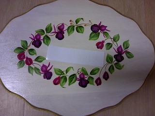 トールペイントのウエルカムボードの本より フクシャのウエルカム のむらひろこさん が完成しました! 同じ会社に勤めているパートさんにトールで表札を頼まれたのですが・・ バラは描けないし、何を描こうか凄く悩んで・・・ ちょっと変わった南国のお花にしました。 フクシャという花は見た事ないけど花言葉は「上品な趣味」だそうです。 指定の色はなかったので似たような絵の具で描きました~。 気に入ってくれるといいな 最近買った本です。アパート住まいなのでガーデニングは出来ないけど トールの飾り方やトールに出てくるハーブの写真が載っていたので買いました! こんな本があったとは知らなかったです。。