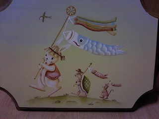 アンジュオリジナルデザインテキスト 出口むつみ先生の「ボーイズフェスティバル」が完成しました~。 同じ素材がなかったのでデザインの合サイズが合うものに描きました グラデーションを描く時に周りにはみださないようにマスティングテープを 貼って気を使いながら描きました。 周りのお花も省いちゃいました。 先生のキャラクターで始めてカメさんとねずみさんが登場です。 可愛いデザインだったので一目ぼれ ブログを通して知り合ったお友達にDPを買ってきてもらいました。 ありがとう~~。