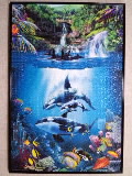 ラッセンの「セイクリッドプールII」、2016ベリースモールピースのジグソーパズルです。エポック社のジグソーパズル超達人検定2級の対象パズルになっています。超達人検定の方は、3級対象のパズルが2点しか販売されていない為、1級・2級のグランドスラム+2階級制覇で終了のようです。マスターピース(450スモールピースで300ピースパズル大の大きさ)の検定も開催されているようですが、コチラはちょっと敬遠しておこうかと・・・。 ※毎度のことですが、検定のお邪魔をしないよう、完成画像は小さめです。 今回のパズルは3時間毎に記録しています。【開始から47分経過】ピース分けは、地上の緑・海水(薄い水色/濃い水色/青)・波・枠・小動物(シャチ/魚/サンゴ)、のように分けてみました。かなり細かい絵なので、ザックリと分けてから、再度、部分的にピース分けをしながら組んでいく予定です。(細かく分けていたら、途中で面倒臭くなってしまったので・・・。もちろん、最初から細かく分けた方が効率良く組めます。)【開始から3時間経過】組みやすそうな、海水の薄い水色の部分から、濃い水色の部分へ、グラデーションを頼りに組んでみました。濃い水色の途中で、範囲が広くなって行き詰ってきたので、一時中断して、地上の部分を組み始めました。山の上の空や、鮮やかな花の部分など、組みやすい場所から組んでいます。【開始から6時間経過】地上の花の部分や、岩肌の部分は組みやすかったのですが、緑の葉の部分に少し時間を食っています。波の部分も、集中力を切らしてしまい、何だかなぁ~・・・。上手く進めないので、先に海中の小魚の部分を、左・中央・右とピース分けし、とりあえず先に組んでしまおうかと・・・。中途半端な組み方になっています・・・。【開始から9時間経過】小魚の部分が終わりました。波の部分もつなげられる部分はつなげました。中央のシャチの部分を組んでいるところですが、なぜか面倒臭く感じてしまって、ちゃんとピースを見れば、どこの部分とわかるんですが、自分が集中しきれてないような・・・。もちろん、この絵柄は大好きなんですけど・・・。【開始から12時間経過】シャチの部分を終えて、地上の残りピースを見本を見ながら組み始めましたが、相変わらず集中力は途切れたまま。見本を見るのをやめて、周りのピースとの色合いや質感などで組んでいったら、楽に終わりました。そういう組み方が効率が良い時もあるんですねぇ~。海水の水色の部分もグラデーションで組んでいってますが、集中すれば簡単なモンです。(なぜ、こんな所でつまづいてたんだろう?)【開始から12時間57分、完成!】シャチの両脇の部分は、枠方向から黒い順に組んでいくと簡単に終わりました。残りのサンゴのピースは、ピースの形や色合いで簡単に埋めることができました。今回チャレンジしたパズルは、コチラ!!パズルの超達人シリーズ超達人検定2級[30%OFF] ラッセン [セイクリッド プール II] EP24-30...価格:2,866円(税込、送料別)【ジグソーパズルジャパン】ラッセン「セイクリッドプールII」エポック社のジグソーパズル超達人検定2級の対象パズルです。2級ラインナップの中では、難易度は易しい方だと思われます。