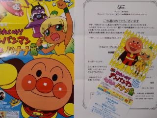 グリコハムの懸賞で、「それいけ!アンパンマン よみがえれバナナ島」の親子ペアチケットが届きました。映画公開間近なので、いろいろなところで映画の紹介などを目にすることが多くなり、娘も『これ、みたいのー』と、テレビの画面をベタベタ触りながら訴えるものだから、「じゃ、アンパンマンソーセージで当たったらね。」と言ってたら、当たりました♪劇中歌の「バナナダンス」が、どうやら娘のお気に入り曲のようで・・・。『今から行こっ!』と手を引っ張ってますが・・・。(まだ、観れませんって・・・。)去年は不二家さんの方でチケットが当たったので、アンパンマンとは相性がいいのかな?ただ、今年も近くの映画館では上映されないみたいなので、水戸駅前か内原ジャスコまで足を運ばなくてはならないようです。去年は、『ブラックココリンが怖い』と、途中で収拾がつかなくなってしまったので、今年は最後まで落ち着いて観たいものです・・・。 グリコハムさん、ありがとうございました~。