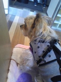 雨が降る前にモモと歩いて、みなとみらいのドッグデプトへ来ています。