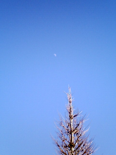 今は、冬なのか春なのか。自分のとる道これでいいのか悪いのか。昼の月に聞いてもフィフティ・フィフティ。