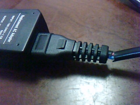 先日手に入れたR61のAC電源アダプタは「互換品」 純正品と比べると半値程度で手に入るので、ジャンクなR61を試すのにはまあこのレベルでいいと考えていた。しかし、使っていくうちに、電源ケーブルの元の部分の被覆線が露出し始めてしまった。どうやら、この部分に多くのストレスがかかるからなのだろうが、それにしてもつくりがいいかげんな気がする。これではいずれ、断線したり、被覆が剥がれてショート・発火のようなことになってしまうのではと、安全性に不安を感じさせられた。 まあ、この部分(電源コード)を別途手に入れればいいのだが…。 互換品はやっぱりボロかったってこと!