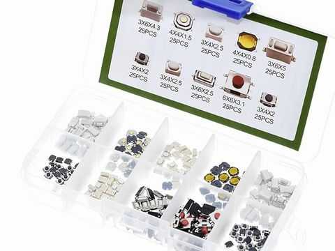 そこで、交換用にAmazonで購入したのが、「LIANHATA 押しボタンスイッチ 250個セット 10種類 タクトスイッチ 収納ケース付き 触覚ボタン モーメンタリ触覚タクトプッシュボタン DIY 玩具 電子部品」送料込みで725円。