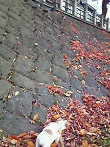 時々雲は出るけれどそんなに寒くない、小春日和でした。おかあさんとお散歩に川の方へ行きました。紅葉の葉っぱがちょうど散っているので道路や河川敷のあちこちに枯れた茶色に混じって赤や黄色の葉っぱが、カサコソと音を立てます。その音が面白いので、枯れ葉の溜まってる方へ行きたいです。川には人も犬もいるけれど、ハトも水鳥もいます。鯉もいます。ハトに餌をくれてる人がいるので、犬も時々立ち止まってしまいます。エサも興味あるけど食べてるハトが逃げないので側に行って匂いを嗅ぎたい。でもおかあさんがリードをにぎっていて側まで行けません。太鼓橋の上から川を覗きこみます。一生懸命に見てると「ラス、落っこちるよ~」っておかあさんに、リードを引っ張られてしまいます。ただ、見てるだけなのに。アタマに来たので、ちょっとリードを噛んでおきました。革製なのでいい噛み心地です(笑)
