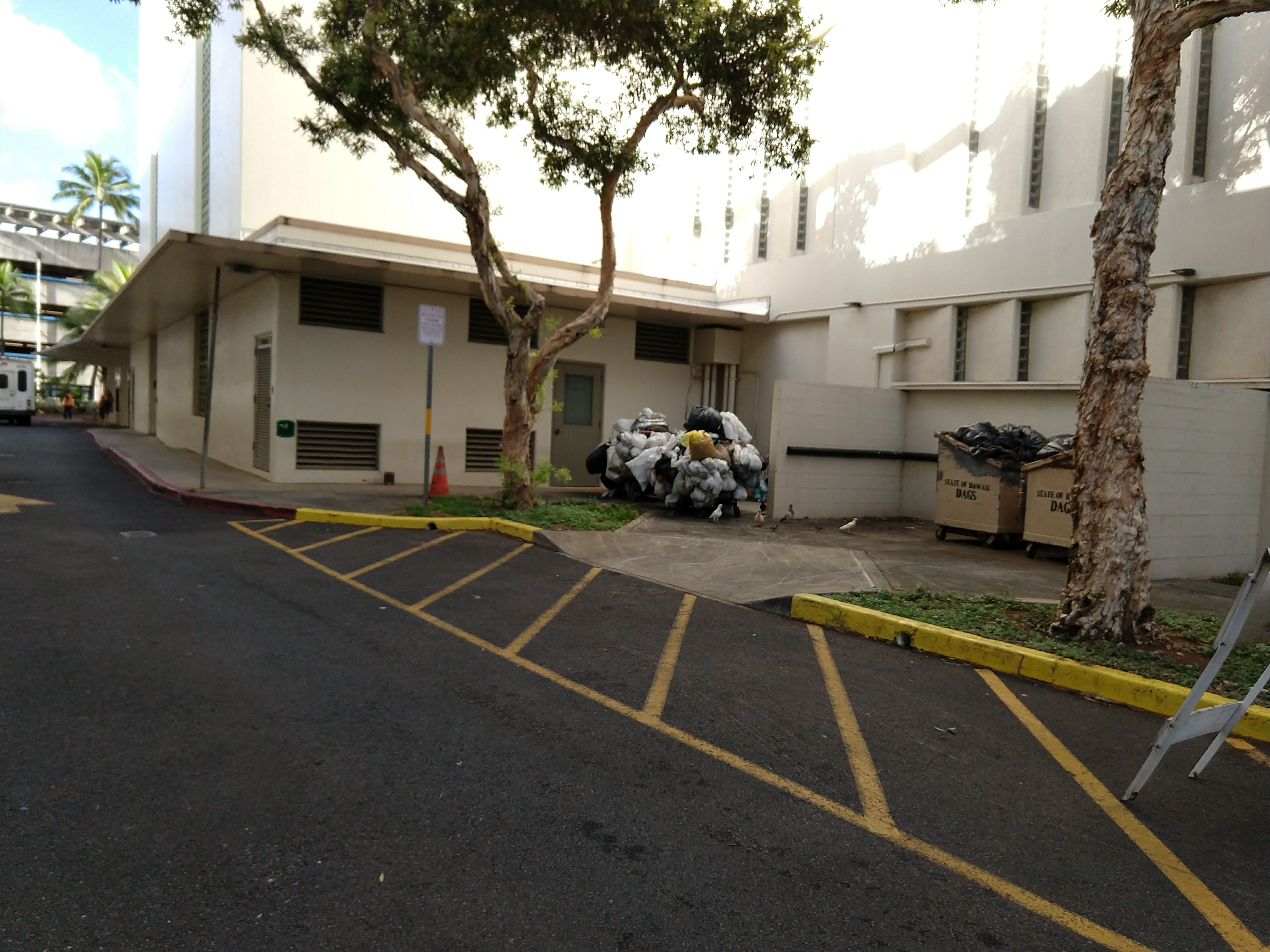 普段ここに陣取っているホームレス女性( 今日のカカアコ + 保護犬キアヌ 11/25/2017