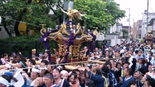 お祭りで~す祭り好きのこの街の人は一ヶ月も前から、あちこちで山車の小屋(なんていうんでしょ?)で一杯やりながら盛り上がっていました。なのに雨。かわいそーそれでも、神輿が練る練る。担ぎ手は、前の人の頭と自分の頭がごっつんこしているんですね。でさっき出店で喜多方ラーメンバーガー買った。まずかったやきそばも夜、広島焼きでも買ってくるかな。……炭水化物ばっか