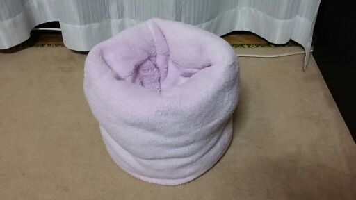 出来たケド…… ただの綿入れ腹巻き(((^_^;)……ハハハ 顔に被るとこんなの。 顔に貼りついて見えますが、かなりゆったり作ったので口鼻のあたりは空間があって息苦しさもなく気持ちいい 耳も鼻も暖かい 肩も暖かい 成功-と言いたいけど、 実は寝ているうちになぜか肩が凝ってくる🔨 んで……プッハ~ ……暑すぎる 結局、寝入り端に、ちーと被る程度。 なんだかクッションになりそうだにゃ~
