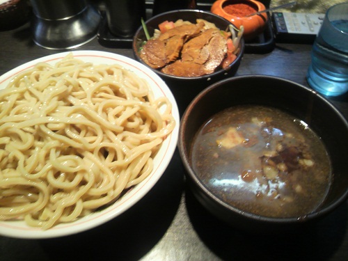 大岡山でランチタイムまたまた麺屋 婆裟羅つけ麺350グラムの小サイズスペック的には安全圏内のはずなのに茹で上がりに待たされたドンブリはすごい山盛り麺だけであの量はものすごいその他につけ汁と具が別々にやって来ましたかなり太い麺はモッチリ甘い含み味に魚の風味おもしろい味わいのつけ汁に最後までしっかり絡みましたチャーシューにトマト・シャキシャキのもやし・柚子これに下味がついてサラダみたいこれを混ぜるとつけめんの味わいの楽しみがいいですねダシの効いた割り湯で残ったスープを美味しくいただくしっかし恐るべし婆裟羅やっぱりミニサイズにしないと食べるのがきつい