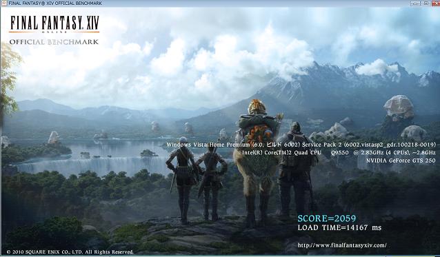 試してみましたけど思ったよりあかんかったかも(´・ω・)もう少しがんばってくれるかとおもったんですが 【2000~2499】 やや重い ゲームプレイは可能ですが、処理負荷によっては動作が重くなりますのでその場合はコンフィグにて調整する事をお勧めいたします。 2059という数字はこんな解説ですね、調整か~~ぁぁぁああめんどうで手をつけてなかったWin7に移行してメモリをもう少し足してみようかな~2分間でしたがすごくキレイなグラフィックでした~カクカクしたり切れたりしなかったんですがあの画面でも本調子じゃなかったとしたらどんだけキレイなんだろう、と恐ろしくなります・・・んーそうなるとモニターも新調したくなる!