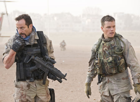 グリーン・ゾーン原作ありきのifドラマボーンシリーズの監督とマット・デイモンが再タッグということでアクション大好きな私はいそいそと観てきましたやっぱ軍服ってカッコイイですね~フル装備したら何十キロだそうですがそういうのを普通に装備できてるってのが男前(C) 2009 Universal Studios. ALL RIGHTS RESERVED.114分の割りには言いたいことを伝えれてるかなと感じますが大量破壊兵器の存在を理由にフセイン政権を崩壊させイラク統治へ動いたという流れや中東情勢などの時事問題を大まかなことをわかってないと取り残されてしまうと思うので軍事関係の映画が好きじゃない人はしんどいです(C) 2009 Universal Studios. ALL RIGHTS RESERVED.ストーリーは大量破壊兵器を探し出す任務を持った隊員のミラーは上司から情報源を渡され、現地へ調査するが危険を犯すだけで空振り続き大義名分としている大量破壊兵器なんて実は最初からないんじゃないの?という角度から1人の兵士が大量破壊兵器の情報源に疑問を持って上司に噛み付きますちょっと正義感?が突出しててしんどかったです相変わらず組織の内部分裂でもめてますしこうでもしないとifドラマなんて出来ませんが・・・ストーリー的に何も考えてなくてもポンポン進むのでストレスは感じませんただやっぱり映像はすごく良かったです緊迫感あるアクションシーンや銃撃戦はさすがハンディカメラを持ちながらの撮影は耳につんざく爆撃音や兵士の息遣い砂煙の向こう側にみえる敵か味方かわからない影がリアルでまさに現地へ放り出された気分でした後半からの銃撃戦は心臓バクバク大量破壊兵器の有無を追っていたミラーが真実を暴くための人物に会い保護しようとしますがそれを阻止した意外な人物にハッとしました押し付けられた民主主義で国が分裂し同じ民族同士が殺し合いをする道路を占拠するアメリカ軍は飲み水にさえ困った市民をマシンガンで威嚇するそんな日常を傍でみていたイラク人男性の最後の言葉がミラーに突き刺さったのが印象深かったです強国が掲げている正義や民主主義で独裁国家を解放しようする話はラース・フォン・トリアー監督・脚本のマンダレイに似ていましたブログ内のマンダレイ感想へこんな露骨な終わり方はしませんけどね。ってかボーン4ってホンマかいな~