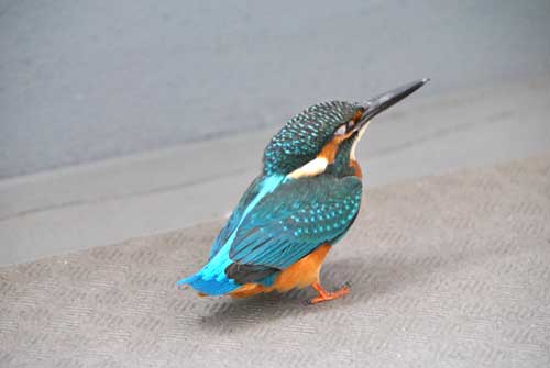 さぁ、今日もいい天気だ~ってことで洗濯をしようとベランダを見たら端っこのほうにいました青い鳥が・・・たまにスズメが冷やかしにベランダで暴れて逃げていくんですが今日は静か~に端っこに青い鳥がうずくまってたんです野鳥っぽかったんでシャッター音に気づかれないようにして写真を撮ったんですがまるっきり逃げない様子でしたふーーーん・・・じゃ~~、と洗濯カゴをかぶせてみましたに、逃げると思ったのに(゚Д゚≡゚Д゚)なんだかあまりの動かなさに心配になってきてHPで調べたんですがこの鳥はたぶんカワセミで窓などにぶつかって脳震とうを起こすことがよくあるようですその様子の写真を見たんですがまさに同じように目をつぶった?状態でフラフラ上体を揺らしていました鳥獣動物の保護の問い合わせ先って土日はお休みだそうで途方にくれたんですが鳥獣保護の基本は「そのままにしておく」だそうですまぁ、そうだわな・・・水をそばに置いてから洗濯物が当たらないよう気を付けながら干しました干した後にカゴを開けて見守りました( ゚д゚ )アッ ソウダ触ったらさすがに逃げるかなっと背中を撫でてみたんですがやっぱり逃げずに目をパチパチとしてキョロキョロしてからまた目を閉じてジッとしてましたか、かわいい(*´ρ`*)いかん、いかん、と見ないフリをして心斎橋の東急HANDSへもちろんバーゲンですついつい買いすぎてしまいまして・・・んで帰った頃には見事カワセミは旅立っていましたあ~寂しいけど、良かった良かった~とよくよくカワセミの居たところをみると・・・ご丁寧にお礼というかなんというか白いウ○コを残していってくれましたぁ(`Д⊂)ドゥーン (⊃Д´)ドゥーン (⊃Д⊂)ドゥーン