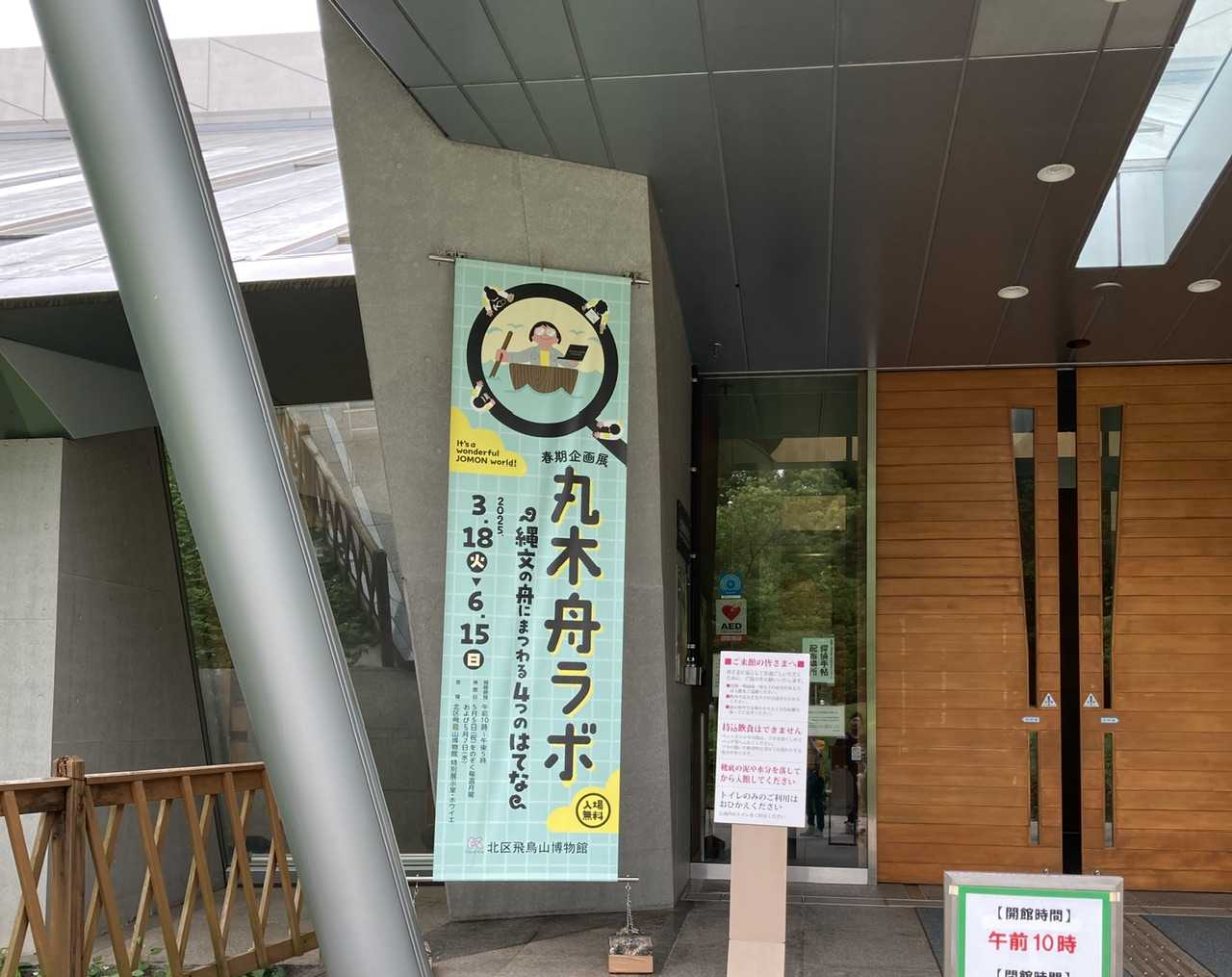 2025/05/18予告を見て楽しみにしてました。飛鳥山博物館は2度目。午後は遺跡学講座に参加です。縄文時代に使われていたのは1本の木をくり抜いて作る丸木舟。北区では4艘が見つかっていて、そのうちの1艘が展示されていました。いつもは常設展示室のケースに入っているのだけれど、今回はケースなしなので、かなり近くでじっくり見れました。中里遺跡出土、全長579m。丸太をくり抜いているので、先端部分を見ると年輪が見えます。舟には表面加工の焦げ跡が。この舟は乾燥劣化しないように、ポリエチレングリコールで処理してあるそう。そういえば前に水中考古学の展示で見た海から引き上げた木製のいかりはトレハロースで処理してたっけ。実際に当時の道具を使ってやってみる実験考古学。丸木舟を作る様子が動画で流れていました。木を切るための縦斧、木を加工するための横斧。使い分けてたのか。とはいえ縄文時代はまだ鉄はないので石斧。鉄製の斧で切るよりも木の繊維がもじゃもじゃしています。このもじゃもじゃを、焼くことで滑らかにしていたらしい。それが舟に残っている焦げ跡!なるほど〜。動画を見てから舟を見るとまた違った風に見えてきます。舟に使った木はムクノキ。硬くて粘りつよい木材なんだって。そして北区の縄文人はその舟で何をしたのか?漁をする、物を運ぶ、遠くのムラと交流をする。左は中里貝塚の貝層剥ぎ取り標本一部。マガキとハマグリが主体の貝層。縄文中期。幅100m、長さ500m〜1kmと広い範囲に及ぶ。高さは高いところでは4.5mにもなる。貝の量がかなり多いことから、ここは貝の加工場だったと考えられる。浜辺で貝を蒸すか茹でるなどして身を取り出し、干貝にして周辺のムラとの交易に使っていたらしい。そして!ここにも!貝輪が!もしかしたら干貝と交換で手に入れていたのかもしれない。千葉の貝輪製作所、余山貝塚で作られた貝輪を手に入れていたのかもしれない。古作貝塚の貝輪入り土器。しかもこれ、東京大学総合研究博物館所蔵のレプリカじゃないやつじゃん!展示スペースは小さいけれど、みっちり詰まった展示でした。図録と野帳のセットなんてのがあったので買いましたよ。企画展は無料で見れます。続いて常設展示室へ。こっちの貝層剥取り標本はでかい!左下に見える空の展示ケースが舟の入ってたケース。とにかくでかいw剥取り標本の前に立って見上げてみる。すごい。説明のところに貝層の下に立ってる人が写ってる写真があるんだけど、とにかくよくこれだけの貝を加工したなぁって思う。およそ200年分だそう。右上:土偶(北区指定有形文化財)縄文後期 東谷戸遺跡出土右下:筒形土偶 縄文後期 西ヶ原遺跡出土午後の遺跡学講座は座学の後、実際に遺跡のあったところを歩きました。これは丸木舟ラボに展示してあった縄文時代の飛鳥山博物館周辺模型。博物館のあるあたりはちょうど武蔵野台地のへり。崖の下が浜辺になっていて、中里貝塚はこの浜辺にあった。住居跡は見つかっていないのでおそらく近くの御殿前遺跡、七社神社裏貝塚、西ヶ原遺跡に住んでいた人たちがここへ来て加工していたのではないかと考えられる。1983〜1984年に東北新幹線延伸工事のための調査だったので、調査が済んだところから工事が進められるような状況だったそう。歩いた経路はこんな感じ。黄色で斜線を引いたところが中里遺跡。博物館をスタートして、七社神社裏貝塚(今は神社が建ってる)を通り、御殿前遺跡のあったところ(今は国立印刷局の東京工場、公園がある)を通ります。御殿前遺跡はこの辺りでは1番大きなムラだったそう。JRの線路沿い(武蔵野台地のへり)を歩く。この崖が縄文時代からあるんだと思うとまた違った味わいが。歩道橋を渡って中里貝塚へ。ちょうど空き地があって、そこを見ると貝殻が散らばっているのが見えます。この周辺一帯が貝塚である証拠。そして常設展示にあった写真の場所がここ!今は普通に公園になってます。ここを4.5mも掘り下げたのもすごいけど、この下に4.5mの貝層が埋まってるのかと思うとなんかすごいよね。ゴールは現在整備中の中里貝塚史跡広場。丸木舟を模したベンチがあります。今は芝生養生中。まだ整備半ばですが、貝塚のことがわかる案内表示だったり展示物だったりができるそう。楽しみです。帰りは上中里駅から電車に乗って帰りました。ホームから見る武蔵野台地の崖。地学も面白そうなんだよな。学生の頃に習ったことはもう本当にすっからかんに忘れてるんで、今からでも!断片的にでも!すぐ忘れちゃうかもしれないけど!勉強しよ。