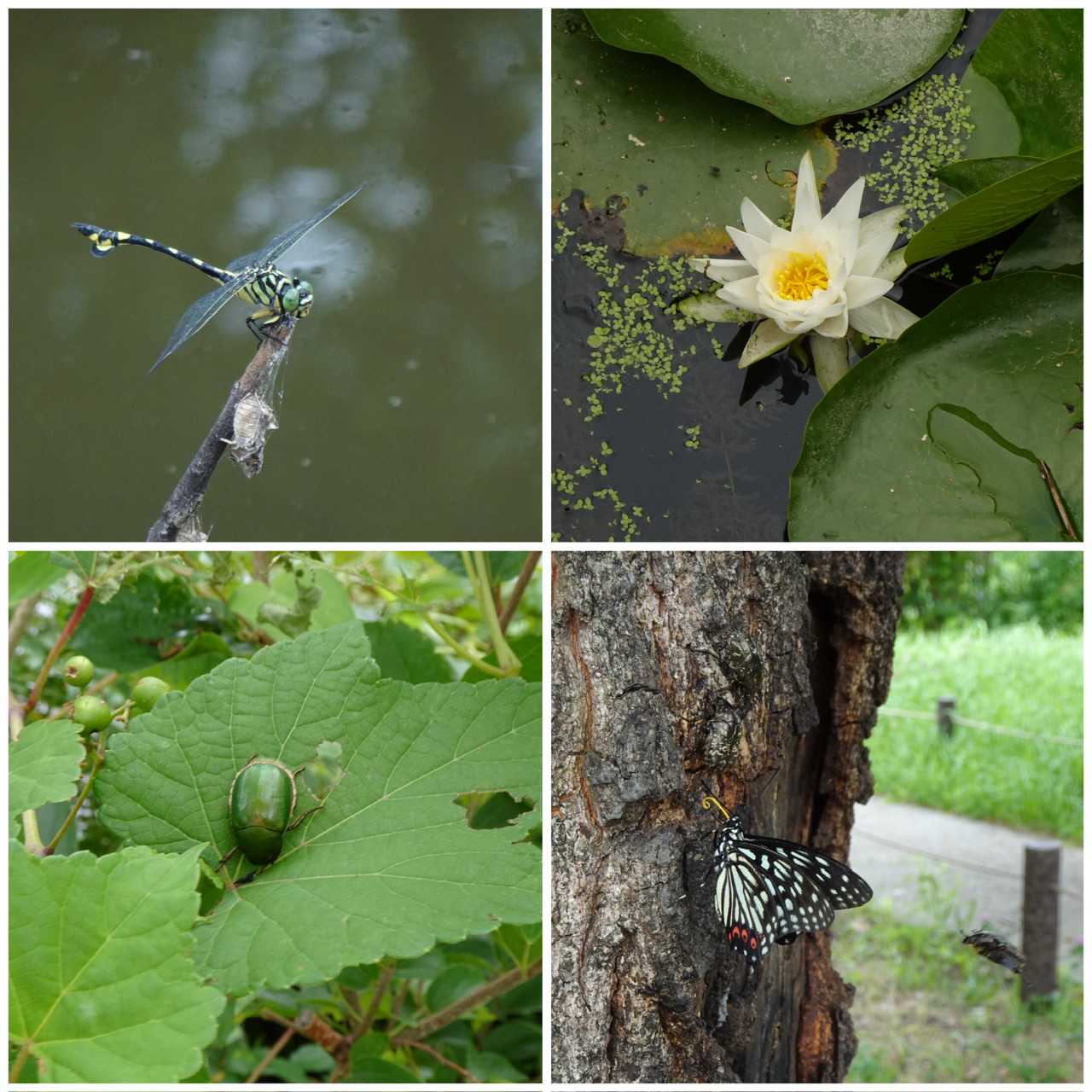 右上:オニバス 水辺のさと内の池にもオニバスがあって、そこも1つ咲いていた。