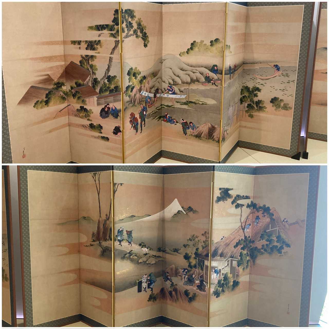 企画展示室前には北斎の描いた屏風「富士田園景図」の高精細複製品がありました。