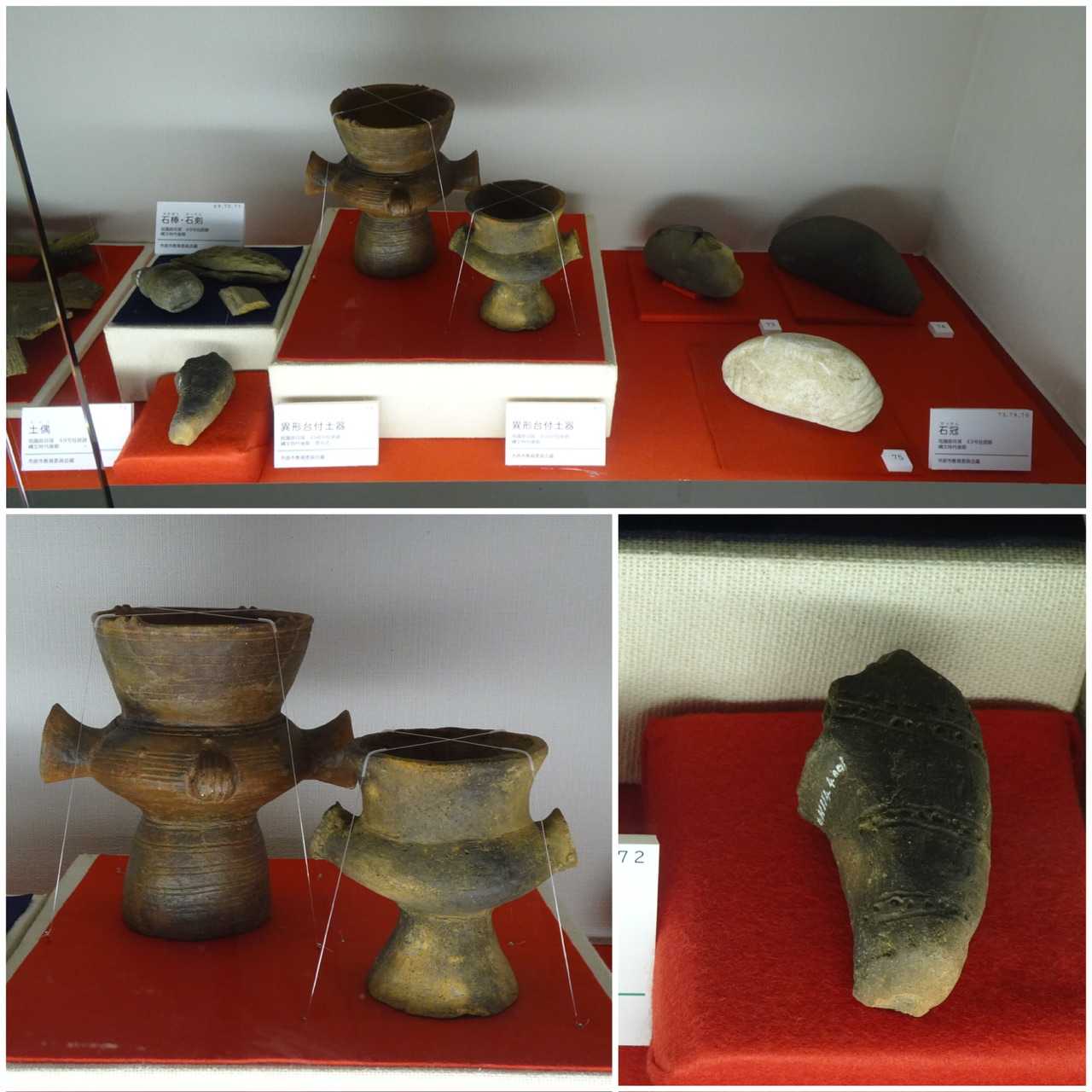 大型建物は後期が大きく晩期は小さくなる傾向がある。そして後期は祭祀に使う道具がある程度決まっていたけれど、晩期はまちまちになる。異形台付土器は後期からしか見つからないらしい。