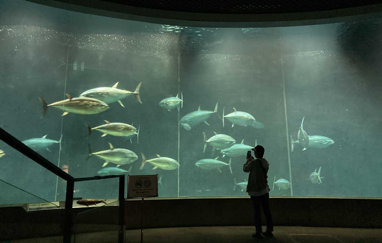 マグロ水槽もゆっくり見れる(写ってるのは知らない人です)