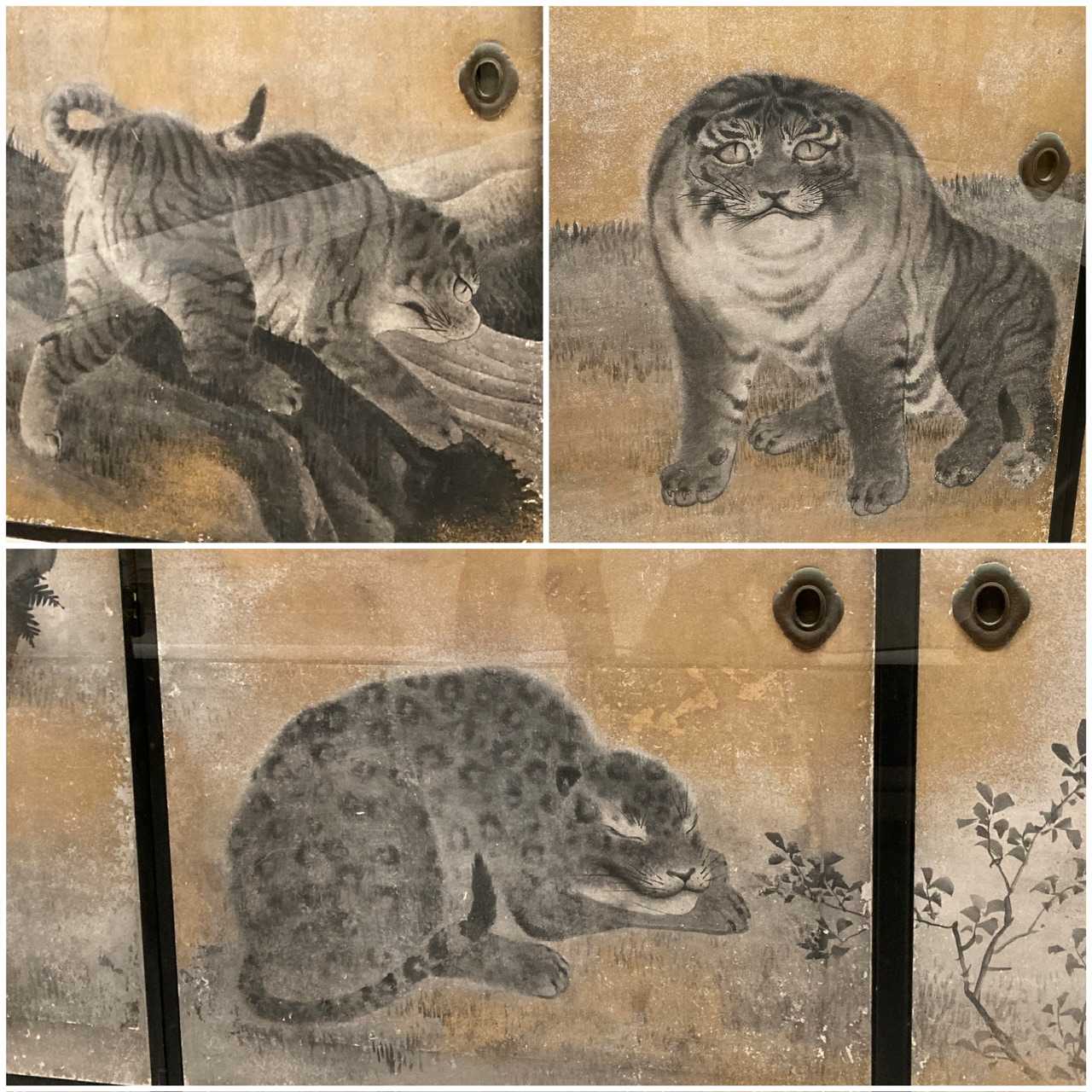 屏風の前には椅子が置いてあるので、椅子に座ってじっくり見ることができます。なんなら書院の中にいる気分。寝ているヒョウと一緒に寝てみたくなりました。