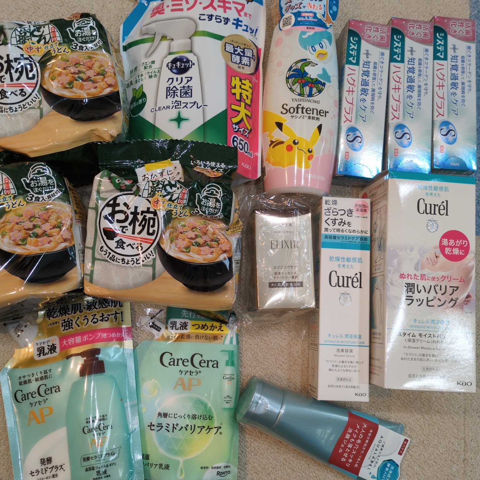 楽天24さん購入品です。前回のマラソンで15%OFFクーポンがでたのでまとめ買いしていました。先月とか8%OFFクーポンとかだったので。今回は8000円以上で12%OFFクーポンかな。定番の日用品買い足しと私の美容品をね。なんか欲しくなっちゃってまとめ買いです。ポケモン可愛い♡ヤシノミ柔軟剤 ポケモンデザイン ピカチュウ&クワッス(520ml)最近はまっている…お椀で食べるどん兵衛(3食入)【日清のどん兵衛】1点別便で届いたのもありますが、半分くらい新しく試したいやつです。一部は家族用もあります。ちょっと肌荒れしていたのでまだアクアレーベルしかお試し出来てないのですが、私は使い心地良かったです。新しく試したくて購入した!アクアレーベル エステ洗顔ジェル(130g)【アクアレーベル(AQUALABEL)】キュレル 潤浸保湿 泡美容液(120g)【キュレル】[キュレル 乾燥 セラミド(保湿)美容液 敏感 保湿]ONE BY KOSE ポアクリア オイル(180ml)【ONE BY KOSE(ワンバイコーセー)】[クレンジング 毛穴 クレンジングオイル]こちらはリピ購入品!私は詰替え購入です。エリクシール シュペリエル ザ セラム aa つけかえ用(50ml)【エリクシール(ELIXIR)】[美容液 保湿 しっとり ハリ感]エリクシール シュペリエル ザ セラム aa(50ml)【エリクシール(ELIXIR)】[美容液 保湿 しっとり ハリ感]ケアセラAP 高保湿先行バリア乳液(130ml)【ケアセラ】ケアセラ APフェイス&ボディ乳液 大容量(400ml)【ケアセラ】