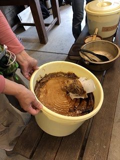 2月にみんなで丁寧に仕込んだ味噌樽を開ける日。