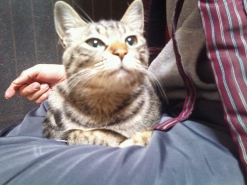 我が家にやってきて、2週間近くになる はるちゃんすっかり リラックスも出来るようになり結構 甘えん坊さんなことが発覚パパサン べったりの生活をしております!そんな はるちゃん 今日は避妊手術の為に病院にお泊まりですお利口さんにしてくれるかな~それから読売新聞をお読みの方~はるちゃん 1月8日の新聞に載ってますもし、目にすることがあったらみてくださ~い(*^_^*)