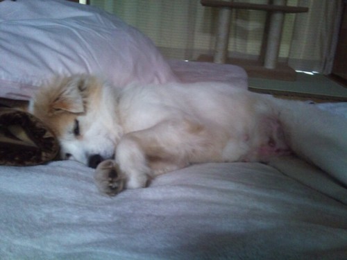 我が家に来て一月半がすぎはるちゃんも随分と我が家になれてきただろうとうれしく思ってたら これはあんまりやろ~ってな調子ですっかり布団は自分の物!パパサンが寝ようとすると、さっと先回りして布団に入り込みスヤスヤ慣れてくれたのは うれしいんだけどどうにも、パパサンはまたまたわがまま娘を作ってしまったようです(笑こりゃ 先が思いやられるかな~(>_<)