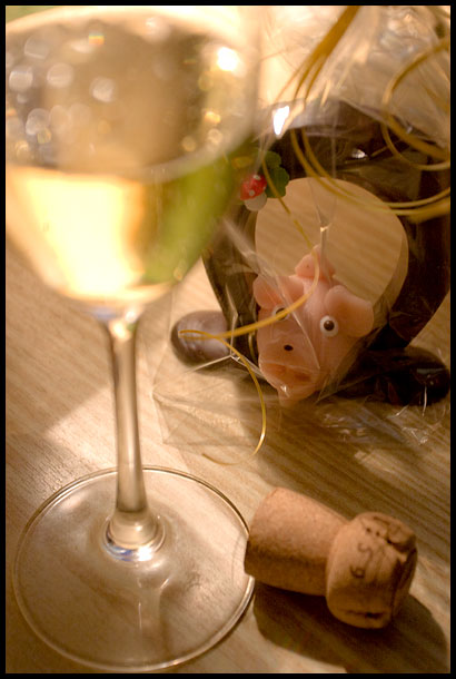 大晦日の風景。午前零時、近所で鳴り響く新年を祝う花火の炸裂音と共に栓を飛ばしたのは、ジャカールのブリュット・モザイク NV。ほのかな熟成香と繊細な酸味、品の良い軽め酒躯と穏やかな泡の刺激。飲み心地よく飲み飽きず、二人で軽く一本空いてしまった。「Frohes neues Jahr!」近所のアパートのベランダから叫ぶ声に、こちらもグラスを挙げて応えた。「Frohes neues Jahr!」今年も縁起物のマルチパンで出来た豚のお菓子を買っておいた。どうぞよい年でありますようにと、豚の目を見て願う。先日メッツで買った栗のペースト。栗餡みたいな味がする。正月にと実家が送ってくれた餅につけて食べてみた。ぜんざいみたいな感じでわりとよくあう。本来はお菓子のモンブランの素材として、あるいはパンに塗ったり、鶏やソーセージの詰め物、肉料理のつけあわせに使うらしい。くどくない甘みだが、リースリングにあわせると残糖がマスキングされ、酸とミネラルが目立つ。甘みが気になるワインを辛口ぎみに補正するのにいいかもしれない。