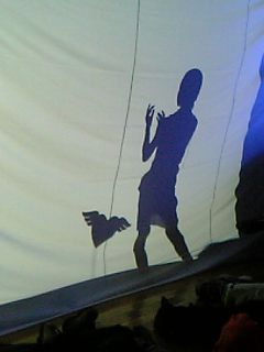 わたしの仲間、影絵師SAKURAさんのイベントがあるということで、時間が時間だったので(深夜2時スタート)考えましたが、みる機会もないし、という事で強行して見てきました。 もう感動ものでした。時間が時間(今日午前中会議だったのです)だったので風人さんにも挨拶できぬまま帰宅し、軽く仮眠してから仕事場へ。 そしてそのあと職場の懇親会(なんとスナック(^^;))、さらにそのあと上野の水上音楽堂でライブを見たのち、巣鴨に移動して昨日も金町で見ていた西村豪さんのライブに千葉の沖縄好きと行って…。23時間の行動を終わって家に帰ってまいりました(^^;)。忙しく動き回っていればいらない事は考えずに済むかな、と思ったのですが、心身疲労はさすがにすごいです(大汗)。