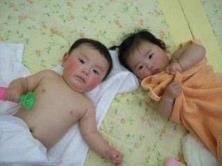 今日は、3回目の三種混合の予防接種を受けに行ってきました。康太は、おそらく、病院にきていい思い出がなかったから、ここに来るとまた嫌な事をされるって思ってか、中に入ると直ぐに泣き出しました。 あまりにも激しく泣くので、授乳させてもらいました。熱を測るように言われたので、授乳しながら康太の脇に体温計を挟みました。すると、どんどん熱があがって、37度6分まで上昇!!!看護婦さんに言ったら、その体温だと予防接種は打てないから、授乳後にもう一度計ってと... 授乳が終わってからもう一度計ってみたら、36度8分といつも通りの体温に戻りました。きっと、泣き叫んだので体温が急上昇しちゃったんでしょうねっ。 無事に予防摂取を受け帰りました。これで暫くは予防接種にいかなくってもいいので、一安心です。次はポリオ。