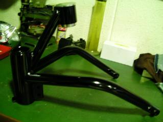 知り合いの車屋さんから電話がかかってきました→ あのなぁ、ドラッグスターのフロントフォーク延ばしたいねんけど、 今、忙しいからやってくれへん?よくわかれへんし。→ いいよー。延ばすだけ? やったらすぐできるわ。→ ほんまぁ。じゃぁすぐ持っていくわーほんとにすぐ来ました。部品をいっぱい!持って。何?このデカイ箱? まぁいいや。とりあえず確認。なんかやたらでかい部品。何コレ?新種のレーシングスタンド?これどうやってフォーク延ばすの?→ フロントフォーク延ばすって・・・・コレッ!?コレはフロントフォークを延ばすものではなく、フレームに取り付けてフレームの延長&角度を変える部品です。「ノーマルのフレームを手軽にグースネックにしてしまおう」というもの。→ これ、スグデキマセン。マエゼンバラデスシ。→ あ~、いいよいいよ。2~3日でやってくれれば じゃぁ、よろしくーあ~あ。ひきうけちゃったしょうがないのでがんばってくださいあ~、でも久しぶりです。アメリカン。そういえば先週はシングル(SR)やってましたねー。10年くらい前は店の中アメリカン、シングルだらけってこともありましたね~。「なんだか懐かしいなぁ」と、すっかり人事のかぁちゃんですつづく