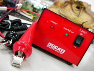 毎日寒い日が続きます。でもってさらにバッテリートラブルが増えているような・・・この寒さじゃしょうがないですねー。そんな時に便利なのがトリクル充電器トリクル充電器といえば「AUTO CRAFT」別売のクイックチャージカプラーを使えば車体からバッテリーを外すことなく充電ができるのでとっても便利!なかなか使える奴です。そして・・・DUCATIがこれを作ると・・・とってもシンプルで、ちょっとおしゃれーさすが、こだわりのイタリヤーンクイックチャージカプラーも付いていますので車体につなげばバッテリーを外さずに充電することができます。こんな素敵な充電器なら、寒い中の整備も楽しくなりそう!・・・って思うのは私だけ????気になるお値段はこちらで→DUCATI 純正バッテリーチャージャー ↑ 「ポチッ」と押してくれると嬉しいです。バッテリー充電、お預かりしますMOTO PEACHBOY