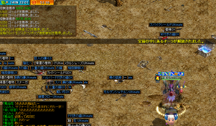 というわけで、2倍期間でLv1213になりました。1212と予想した らぴんさん 惜しくもピタリ賞はならずでしたが10本獲得おめでとう!(本当は1212のときに疲労困憊で狩りやめたかったけどピタリは何か悔しいので1上げちゃった)普段、狩りは嫌いとか面倒くさいとか言っているので、そんなに狩れないと予想した人が多かったですね・・w次の石の日に1250に上げられるように、毎日コツコツ狩りは続けたいと思います。では、今回はこれで終わりです。