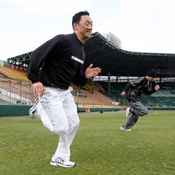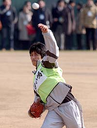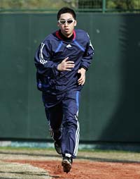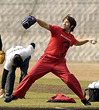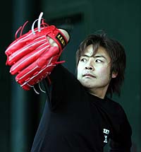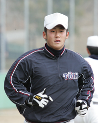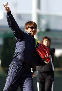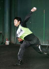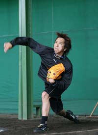 熱いバトル!ポスト井川7人衆、御前ブルペンそろい踏み宣言!いよいよゴングが鳴るポスト井川争い。岡田監督の視察を翌日に控え、江草(上)、中村泰、能見、岩田(中)、三東、小嶋(下)はブルペンで投げ込んだ 阪神・岡田彰布監督(49)が24日、鳴尾浜球場での自主トレを視察する。その後のスタッフ会議でキャンプ一、二軍メンバーを振り分けるため、選手にとってはまさしく最終アピールの場だ。23日は2年目を迎える岩田稔投手(23)、昨季5勝の江草仁貴投手(26)が今年初のブルペン入り。ヤンキースに移籍した井川慶投手(27)の後継サウスポー7人衆が、御前ブルペンそろい踏みを宣言だ。◇ 将が見つめるブルペンは、品評会さながらの熱気に包まれるはずだ。長く井川が鎮座したイスの後継として、7人がその左手を挙げている。筆頭格の江草に三東、能見、中村泰…。岡田監督が姿を見せたその瞬間、熱きバトルが封切られる。 「体重は85キロで変わってないんですけど、足に多少筋肉はつきましたかね。(井川からは)積み重ねが大事だという話を聞きました。(ポスト井川の期待があるが)少しでもそうなれれば」 指揮官到来を翌日に控えたこの日、昨年の希望枠左腕・岩田が今年初めてブルペン入りを果たした。ヤ軍入りした前エースとともに、12日から茨城県内で自主トレを張ってきた。前日21日に帰阪し、満を持して30球。捕手を立たせたままだが、下半身が分厚くなったのが分かる。トレーニング法から心構えまでを伝授され、われこそが後継者だと言わんばかりだ。 7人衆のうち、筒井をのぞく6人がこの日ブルペン入り。筒井も24日には「投げます」と話し、ポスト井川が勢ぞろいすることになる。 2月1日というよりは、それぞれが「1・24」を意識して調整してきたフシがある。この日、能見は初めて捕手を座らせた。ここまで投球を封印してきた江草も、ついにマウンドの感触を確かめた。 「きょうは背番号と同じ26球です。スタートはそれでいこうと決めていたので。思った以上にスムーズにいってびっくりしています。あしたもこの調子なら投げます」 昨季の開幕ローテ3番手を張った江草でも、安穏とはしていない。スリークオーターに腕を下げた筒井、必殺球のスライダーを持つ中村泰、そして左ヒジ手術から復活した三東が、一群になって走っている。新人の小嶋もいる。選別は24日から始まるのだ。 一軍キャンプ行きの関門を越えても、紅白戦、練習試合、OP戦…。ふるい落としは至るところで断行される。最初の一歩で前に出るのは果たして誰か。小嶋、先輩脅かすぞ! 希望枠ルーキーの小嶋(大阪ガス)も24日、御前ブルペンに登場する。いよいよ左腕バトルに参入だ。 「球数も増やしていきたい。アピールするにはいい機会。肩ができて、しっかり投げられることを見せたい」 この日は2度目のブルペン入り。7分の力で30球を投げ込んだ。岡田監督の視察に当たり、変化球解禁も視野に入れる。先輩左腕を脅かすつもりだ。赤星2・8初戦出る!新フォーム&新バットで猛打アピールだ!鳴尾浜で守備練習する赤星。2・8紅白戦から打席に立つ決意だ 阪神・赤星憲広外野手(30)が23日、自主トレで訪れた西宮市の鳴尾浜球場で、沖縄春季キャンプで2月8日に行われる紅白戦に出場する考えがあることを明かした。「盗塁はする必要はない」と、シーズンまで自慢の足を“封印”することも決め、まずは、打撃のカンを取り戻し、“虎の核弾頭”への返り咲きを最優先する。◇ 2月8日。赤星が実戦の打席に入る日を、もっとも早い紅白戦に定めた。 「キャンプでは実戦で1打席でも多く立ちたい。自分の課題は打撃。やるべきことをやらないといけない。バットを変えた不安もあるしね」 走るスピードは誰にも負けない自信がある。だが、出塁しなければ、その魅力は半減する。昨季、打率.269で終わった赤星が、バットマンとして復活を最優先。若手のアピールの場にまじって、いきなり打席に入る。 志願して臨んだ昨年の秋季キャンプでは、連日特打で打撃フォームを改造。以前より右足を高く上げず、下半身の粘りを意識したものに変えた。また、今月21日には、細グリップ&今までより40グラム軽い910グラムの新バット使用を決定。その試行錯誤の“緒戦”が、2月8日に予定されている紅白戦になるわけだ。 赤星が、8日の段階で打席に立つのは過去6年で最も早い日付だ。今季を勝負年とみる心意気が如実に表れた。そのうえで、春季キャンプであえて自慢の足を“封印”する。 「試合で走る? いや、その必要はない。負担もかかるし。それよりも、打撃だね」。“走れコール”を受けても、パフォーマンスは必要ない。課題克服へ向け、真剣に取り組む背中をファンにみせるのが赤星のすべて。だからこそ、最軽量の新スパイクの使用も、必要最小限にとどめるつもりだ。 「練習では、必要なとき以外は、スパイクを履かない。下半身に負担はかけたくないから」 この日、鳴尾浜で約4時間の自主トレを行った体はすでに“戦闘状