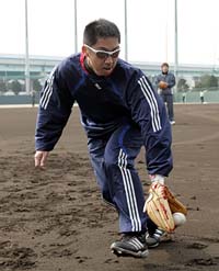 渡辺の必殺ナックル完成!初コンビ狩野も必死「怖いくらい」!ブルペンでナックルを投げ込む渡辺。魔球は隠さない 魔球完成だ!! 阪神・渡辺亮投手(24)が23日、鳴尾浜球場でブルペン入り。必殺球のナックルボールの完全マスターに手応えを見せた。ナックル捕球用ミットを用意する狩野恵輔捕手(24)とも初コンビを組んだ。2月8日の紅白戦初戦から、隠すことなく魔球を前面に押し出す構えだ。◇ ナックルボーラーとして一軍入りを目指す渡辺が、手応えを深めた30球だった。魔球専用ミットを用意する狩野との今年初コンビ。相棒が思わず避けてしまうほど、不規則に揺れながら落ちる変化は絶大だった。 「(投げ方を)つかんだというか、最近、ボールの弾き方とかが分かってきました。ちょっと前進しました。(狩野と)やれてよかったです」 予定外の“共演”だったため、狩野は通常のミットで捕球した。より大きく、ポケットの深い魔球用のミットも用意していたが、この日は持ち合わせていなかった。 「怖いくらいっすよ。ケガしたらアカンと思って、必死でした」。2度も変化すると評判の必殺球に、ときには半身で捕球するほどだった。 昨秋の倉敷キャンプで脚光を浴び、昨年末には米国からナックルに関する資料が届いた。見ず知らずの一ファンの厚意だったが、改めて投げ方を研究できた。渡辺は親指と小指でボールを挟み、中指と薬指の2本の爪を立てて投げている。ボールをはじく2本の指のツメの長さまで、これというものをつかんだ。 「毎日ブルペンで投げていきます。(実戦でも)自分にはこれしかアピールするものがない」 2月8日の紅白戦初戦から、魔球で打者を攻め立てることを宣言。実戦で威力を証明できれば、岡田阪神の秘密兵器になれるはずだ。まだやれる!桧山が復活宣言「大爆発するぞという気持ち」!桧山は年齢の不安にも打ち克つつもりだ 俺はまだまだやれる! 甲子園球場で自主トレを行った阪神・桧山進次郎外野手(37)が23日、年齢による体の衰えはないことを強調。昨季の不調から今季の復活を高らかに宣言した。◇ 「肩もまだまだ投げれる。まだ老け込む年齢じゃない」 プロ17年目のベテランだが、上には上がいる。工藤、山本昌、古田と40歳をすぎても現役を続けている選手が数多くいる現状に、「可能性があるんで、それ以上やる」と意気込みは十分だ。 しかし現状は、昨季85試合に出場し、打率.180、2本塁打、12打点と、95年のレギュラー獲得以降最低の成績。今季は10歳年下の浜中との右翼争いが待っているが、「(今季は)2年分、大笑いできるように、大爆発するぞという気持ちでいる」。5、6年ぶりにバットを改良した桧山。進化したベテランが、虎視眈々と定位置を狙っている。秀太、丸刈りだ!寒かったら“ひちょりキャップ”かぶります!丸刈りにし、照れくさそうな秀太。決意の表れ!? 今季で13年目を迎える阪神・秀太内野手(29)が23日、決意?の丸刈り頭で鳴尾浜に姿を見せ、ランニング中心の自主トレを、約4時間行った。◇ 「今日、(丸刈りに)しました。期する思い? そういうわけでもないですけどね」 ン年ぶりの髪形に、恥ずかしそうな笑顔をみせた秀太。ニット帽を深くかぶって走るものの、あまりの“不自然さ”で、バレバレ。会う選手会う選手に“ツッコミ”を入れられる場面もあった。 「春季キャンプ中? もちろん、このままですよ」と秀太。沖縄でもさすがに寒そうだが、「帽子じゃなくて、“森本(稀哲=日本ハム)キャップ”をかぶるから」と笑わせた。 年明けは藤本とともに、徳島市内で自主トレを行い、仕上がりは上々。4年間無失策中で、“スーパーサブ”を目指す男が、背水の思いを胸に春を迎える。