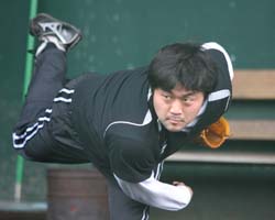 左ひじ驚異の回復!下柳38歳10カ月での開幕投手あるでェ!奄美大島で自主トレ中の下柳。左ひじ手術後の不安も消えつつある 契約未更改の阪神・下柳剛投手(38)が今月末、キャンプ地の沖縄でサインを済ませることが17日、濃厚となった。現在は鹿児島・奄美大島で自主トレ中。左ひじ手術後の経過も良好で、約50メートルの遠投をこなしている。球団側も調整面に配慮し、異例の“現地更改”を認める方針だ。2月1日のブルペン入りも可能なほど順調で、38歳10カ月での開幕投手なら球団歴代2位となる高齢での栄誉となる。◇ 左ひじ手術を克服した鉄腕が、“本命”福原の対抗馬に名乗りを上げる。現在、奄美大島で自主トレ中の下柳が、沖縄での更改を行うことが濃厚となった。球団側は調整を優先させる方針で、キャンプ地での月末サインを容認する。 「日程は決まってないです。トレーニングで向こうにずっといると聞いていますし。(現地更改になるのかと問われて)この時期になるとね。最終調整はこれからです」 沼沢球団本部長はこの日、球団事務所での契約更改にこだわらない方針を強調した。今季が2年契約の2年目で、条件面ではすでに合意に達している。今オフ唯一の越年者だが、問題はない。契約書を沖縄に持参するのもいとわない姿勢だ。 その配慮に応えるように、下柳は劇的な回復ぶりを見せているという。昨年10月20日に左ひじにメスを入れ、関節形成術を受けた。12月2日から奄美大島に場所を移し、リハビリを兼ねた自主トレに没頭している。 当初は陸上競技場での走り込みに集中。大みそかに行われた「K-1 Dynamite!!」(京セラD)に桜庭和志のセコンド役として出向いた後、再び奄美大島にUターン。「今では約50メートルの遠投ができるまでに回復したと聞いた。順調すぎるほど順調でしょう。例年通り、キャンプイン初日のブルペンにも入れるのでは」と関係者も太鼓判を押している。 3月30日の広島戦(京セラD)での開幕投手争いへの参戦も、にわかに現実味を帯びてきた。昨年まで5年間務めた井川や、その前に2年連続して任された星野伸、湯舟、仲田、過去には6度務めた江夏も…。虎の歴代開幕投手は、左腕エースの系譜でもある。親友・桜庭が“疑惑の一戦”で敗れたのと同じマウンドに上がれば、その時点で38歳10カ月。38歳8カ月の野村収(84年)を上回り、2リーグ分立前の1949年に41歳で投げた若林忠志に次ぐ虎投歴代2位の年長開幕投手に名を刻むことになる。 契約書へのサインはもはや、儀式に過ぎない。昨季の実績から、右の柱・福原が“独走”しているような格好だが、「待った」をかけるのは、南国でキバを研ぐこの男だ。■データBox ☆…プロ野球最高齢での開幕投手は、98年4月3日、中日戦(広島)で広島・大野豊が42歳7カ月で務める。またプロ初の開幕投手最高齢は、03年3月28日、近鉄戦(大阪D)でオリックス・吉井理人が37歳11カ月で務めた。 ☆…阪神では49年4月2日、若林忠志が大映戦(後楽園)で41歳1カ月という年齢で開幕投手を務めた。2リーグ分立後では84年4月6日、巨人戦(後楽園)で野村収が37歳8カ月で務めた。★カギ握る2年目 下柳は年俸1億7500万円の2年契約を結んでおり、今季がその最終年。順調なら今季中に2度目のFA権利を取得するだけに、今シーズンの成績は今後の去就にもかかわってくる。 ここ2年連続2ケタ星を挙げ、衰えのないところを見せているだけに、再び複数年契約を勝ち取る可能性も十分。すでに05年に37歳で、最年長最多勝記録を打ち立ててはいるが、打の金本に並ぶ記録ホルダーとなる資格は十分だ。矢野が守護神復活へ珍プラン!?久保田に“先発のススメ”!甲子園球場内で自主トレを続ける矢野。窪田の復活を思えばこそ、の独自プランをあかした JFKの復活に向けて、虎の正妻が珍提案だ。甲子園球場で自主トレを行った阪神・矢野輝弘捕手(38)が17日、久保田の再生プランを私見として明かした。球威に頼るあまりに痛い目にも遭った守護神を、調整段階で先発起用することで投球術を習得してほしいというもの。岡田監督の見解やいかに…。◇ もう一度、JFKによる逃げ切りを完全復活させたい。再起をかけてシーズンに臨む久保田に対して、恋女房の矢野が再生プロジェクトを温めていた。「起用法は監督が決めること」と前置きしながらも、投球の幅を広げさせるために“先発のススメ”を説いた。 「長い回を投げれば、ゴロを狙って前に打たせるようになる。久保田は今まで厳しい場面で、空振りを狙って100%の力で腕を振ってきた。余裕がある中で投げて、見えてくることもある。そこから成長につながるかもしれない」 甲子園球場で黙々と自主トレを行いながら、守護神再生プランを思い描いていた。V奪回には藤川、ウィリアムスから久保田へとつなぐのリレーが理想だが、現状の久保田では心もとない。そこで思い描いたのが、キャンプの紅白戦かオープン戦の序盤で先発マウンドを経験させるプランだ。 「先発をやることで、カーブとか遅い球の緩急を使うよ