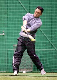 5番・今岡、6番・浜中や!岡田監督はや断言!07年ベスト主軸!守備練習に時間を割く今岡。キャンプでもこの姿勢で、5番、頼んまっせ 07年猛虎のクリーンアップや!! 阪神・岡田彰布監督(49)が16日、兵庫県加東市での『天地会チャリティーコンペ』で、5番に今岡、6番に浜中を据える基本方針を明かした。「右が打たないといかん」と2人をキーマンに指名。特に、右手負傷からの完全復活がかかる今岡には、春季キャンプでの特守と、2月8日開始の紅白戦への強制参加を厳命した。◇笑顔でゴルフの岡田監督。07年オーダーを思い浮かべてニンマリ? 胸中から「不安」の2文字は消えていた。5番は今岡。6番は浜中に託す。キャンプインまで2週間も残し、岡田監督は早くも腹を決めた。 「今岡は、ここに来たらもう心配はしてない。11、12月はキャンプに間に合うかというのはあったけど。普通に守れたらいいんやから」 『天地会』のゴルフコンペに参加。右手バネ指の手術などから完全復活を目指す今岡については、14日のスタッフ会議で『順調』との報告を受けていた。昨秋キャンプでは「投げ方を忘れとる」と頭を悩ませていたが、もう迷いはない。復帰は『5番・三塁』と決めた。 「去年、キャンプでは守りをほとんどやってなかったからな。打つ方ばかりになっていた。(守備練習は)足腰が鍛えられるし、打つ方も足腰が弱いと打てん」 昨年の春季キャンプ。今岡はバットを振り回すことに終始した。初特守は、安芸入り後の2月21日になってから。シーズンに入って、肝心の打撃も不振のまま。だからこそ指揮官は、相乗効果を期待して特守を促す。 2月8日に予定する初の紅白戦にも「(今岡がいないと)人数的にできない」と、“強制出場”を命じた。 「浜中は打点をあげて、チームが乗っていける打順になる。5、6番? 6番の方が足が速い方がいい」。今岡の5番復帰で、浜中は6番での起用を明言。比較的、足が速く、下位とのつなぎ役にもはまる。「待つタイプはチャンスでは難しい。最初から積極的にいかないと。ネクストバッターズサークルから常に準備しとかんと」と浜中には積極打法を命じた。 これで、07年の猛虎打線の輪郭が、はっきりと浮かび上がった。3番はシーツ。4番は不動の金本。その後ろで、一昨年147打点を叩きだした実績を誇る今岡と、昨年20発と成長した浜中が、にらみをきかす。超攻撃型オーダーの完成だ。 「右打者が打たないといかん。3割近い打者が前におるから、走者が多い場面で回ってくる。5番、6番が打つと、相手も4番で勝負せないかん。みんながいい方にいく」 5、6番コンビをキーマンに挙げる指揮官。復活するポイントゲッターととともに、V奪回への青写真は描かれ始めている。★今岡、黙々ノック 今岡は鳴尾浜で自主トレ。屋外でノックを受けた後、室内練習場でティー打撃を行った。 右手ばね指手術の不安を取り除くために、実戦での守備機会を求めているが、紅白戦、練習試合、オープン戦の出場については、「その都度、その都度です。監督に決めてもらうことなんで、自分の口からは何ともいえない」と話していた。★浜中、全試合出る 浜中は兵庫県淡路島で行っている自主トレを公開し、スローイングやフリー打撃などで意欲的に体を動かした。右肩の故障から復活した昨季は自己最多の139試合に出場し、打率.302、20本塁打の成績を残した。11年目にむけ「せっかくレギュラーを取ったので死守したい。目標は全試合出ること」と力強く話し「100打点にこだわりを持ってやっていきたい」と主軸打者としての目標も口にした。★シーツは3番適役 阪神に移籍して今季で3年目となるシーツについては、岡田監督は3番で起用する方針を明言した。昨年は5番としても18試合使ったが、無理に引っ張ろうとして調子を崩しただけに、「チャンスを広げる方がいい。3番が打ちやすそうやな。センターを狙って、右に打球がいくとチャンスも広がる」と、3番での適性を強調していた。杉山よ、虎投の軸になれ!同級生・球児がゲキ!「僕もサポート」!寒い鳴尾浜で汗を流す杉山(左)。球児が同級生ならではのゲキ 鳴尾浜で自主トレを行っている阪神・杉山直久投手(26)が16日、沖縄・嘉手納で自主トレ中の藤川球児投手(26)から激励メッセージを受け取った。福原、安藤に並ぶ「虎投の軸になれ」という、同級生の熱いゲキを胸に、改めて今季に向けて決意を固めた。◇ お前ならもっとできる-。同い年の仲間からの猛ゲキが、杉山の気持ちを奮い立たせた。 「球児には、投げるたびに頑張ってといわれている。まずは開幕ローテに入らないことには意味がないので。とにかくチームが勝てることが一番だと思っています」 鳴尾浜でキャッチボールを行い、ノックを受けるという通常メニュー。練習後に、南国で自主トレを行っている球児からのメッセージを伝え聞いた。 05年に自己最多の9勝を挙げたが、昨季の前半戦は11試合に登板して白星なし。終盤は4連勝(4敗)で締めたものの、同級生・球児の目