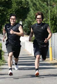 今年もセットアッパー!球児、フル稼働へ省エネ調整プラン!初夏を思わせる沖縄の青空の下、球児(右)が右肩温存キャンプ計画を明かした。左は福原 右腕温存キャンプでV奪回や! 阪神・藤川球児投手(26)が15日、同僚の福原忍投手(30)と行っている沖縄・嘉手納町での自主トレを公開した。2月1日からの沖縄・宜野座キャンプでは、1日30球限定の省エネ調整プランを描いていることを表明。すべてはセットアッパーに徹し、シーズンでフル稼働するためだ。◇ 球春の訪れに備え、マイペースで剛腕に磨きをかける。例年通り南国で始動した球児は、“チームの柱”として1年間投げ続けるため、キャンプ中の調整も省エネで乗り切ることを決めた。 「時間が許す限りゆっくりやりたい。ブルペンには2月1日から入るつもりだけど、キャンプでは1日30球に抑えたい。50球を超えることはないと思う」 気温21度。初夏を思わせる沖縄の青空のもと、半袖姿で福原と25分間にわたってキャッチボールを行った。ゆったりと流れる時間の中で、今後の調整法もスローペースを貫くことを強調した。 もともと、ブルペンで球数を多く投げ込むタイプではない。WBC(ワールド・ベースボール・クラシック)のために調整を早めた昨年も1日30球限定だった。そして今年も同じく30球調整。1年前と同様、疲労を抑える狙いもあるが、今年はそれだけではない。 「自分がけがをすればチームのマイナス。すべてのことを考えて、みんなのために頑張りたい」と自覚する。マイペース調整は単なるわがままではなく、“チームの柱”であるという自負からくるものだ。 キャンプ中に毎日ブルペン入りしても、合計で900球に満たない調整になる。「2400球を投げ込む」と宣言した久保田に比べて、約3分の1の球数はあまりにも少ない。岡田監督から他の投手陣にも投げ込み指令が下る中、自分の地位を確立済みだという自信にあふれる。もちろん、背負う期待は承知で、きつい仕事場に戻る決意も固めた。 「今の段階ではセットアッパーで考えている。去年も六、七回に苦しい場面があった。僕が六、七回を投げた方がチームが機能していた」 昨年10月、右肩を故障した後に負担の大きさから一度はクローザー転向を志願した。それほど過酷なセットアッパーもやりぬく覚悟。何よりも、チームのために尽くす考えだ。目指すは05年リーグ優勝の原動力となった最強方程式「JFK」の再来。自らの手で勝利を手繰り寄せる。 「イメージは去年よりすごいピッチング。求められているもの以上のものを出したい」 球児は昨季以上の活躍を誓った。ここ沖縄で体をつくり、省エネキャンプを過ごしたあと、シーズンでは必ずV奪回へフル稼働する。■球児の守護神専任志願VTR 昨年10月16日、練習のため鳴尾浜を訪れた藤川は「中継ぎが一番しんどい。(相対的に)先発や抑えの方がラク。数字も出て評価されやすいし」と注目発言した。07年のクローザー専任を主張した形で、当時、勝利の方程式『JFK』を結成した久保田が、右手甲骨折からの復活が遅れていただけに、物議を醸すかとも思われた。だが、これを伝え聞いた久保投手コーチは「選手がポジションを言ってはいけない」とした上で「長くやらせてあげたいというのはある」と中継ぎ&抑えの両刀の激務に“理解”を示した。結局、球児はフォア・ザ・チームに徹する覚悟を決めた格好だ。★昨季キャンプも30球調整 球児は昨年2月の沖縄キャンプ中も、1日30球限定のブルペン投球を行った。「100球も投げる必要はない。毎日、毎日ちょっとずつやっていく」。WBC日本代表として難しい調整を強いられたが、焦らず、効率よく仕上げる球児流のスロー調整で挑んだ。昨年は2月15日前後を調整のめどにしていたが、今年はあくまでも3月30日の開幕に照準を合わせている。福原に新エースの自覚!中継ぎの負担減へ目標「10完投」!福原のノルマは“ミスター完投”の襲名。高いハードルは自覚の証明だ 阪神・福原忍投手(30)は同僚の藤川と沖縄・嘉手納町での自主トレを公開した15日、自身に今季の完投数「10」というノルマを課した。昨年のセ・リーグでは誰も到達できなかった数字だが、高いハードルは“新エース”としての自覚十分。中継ぎ陣の負担軽減を狙い、虎投のリーダーとしてチームをV奪回へとけん引する。◇ 誰にも譲らず最後までマウンドを守る。南国で本格始動した福原が、虎投の軸となるべく改めて気合を入れ直した。 「やっぱり完投と思ってやりたいし、完投数は気にしている。去年は3つ。毎年増やしたいと思っているんで、10くらいは目指したい」 沖縄の太陽の下、30分間のランニングで半袖シャツに汗をにじませ、大きな目標を掲げた。これぞ“新エース”としての自覚の芽生えだ。 井川の抜けた穴を埋めるのが、今季の福原の最重要課題。新たなエースとして威厳を見せるためにも、井川がクリアしてきた記録は何としても抜き去りたい。そこでまず完投数に目をつけた。 昨年の井川の完投数は「8」。完