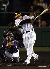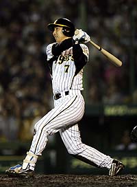 2007年4月11日(水) 対中日 2回戦 甲子園 阪神6×6中日4 所載はこちらをクリック 救世主や!林が代打同点タイムリー!不振・浜中よりエエわ!八回、同点の二塁打を放った林。もう待てない。ファンはスタメン起用を熱望する (セ・リーグ、阪神6-6中日=延長十二回規定により引き分け、2回戦、阪神1勝1分、11日、甲子園)モノが違う!! 阪神・林威助(リン・ウェイツゥ)外野手(28)が中日戦の八回、代打で起死回生の2点二塁打。延長十二回ドローとなったが、執念の一打に虎党はウットリ。竜虎決戦第3R。ファンは「6番・右翼」に、その名が、告げられるのを待っている。◇ 一度は土俵際に追い込まれた。それでも歯を食いしばるだけの力がある。甲子園で迎えた今季初の延長戦。21人を使う総力戦で、4時間37分に及ぶ死闘の末に延長十二回で決着は持ち越し。宿敵に岡田監督の“切り札”が貴重な同点打で窮地を救った。 「同点だからな。岩瀬がおらんし、どこかで岡本が出てくると思ってたけど、今岡がつないだからな」七回のジェット風船。甲子園が死闘に揺れた 瞬間的なひらめきだった。2点を追う八回二死。金本が右前打。今岡も左前打で続いた。そして「代打・林」-。暴投が絡んで二死二、三塁。カウント1-2からの真ん中スライダーを、完璧に捕らえた。虎党の歓声に揺らめく白球は、中越えの2点二塁打。その瞬間、4万3862人を詰め込んだ甲子園が揺れた。 「ヒット1本で同点。ヒットを打ちにいって、たまたまああいう形なってよかった」 林に笑顔が浮かぶ。救世主であり、指揮官にとっては“悩みのタネ”。プロ5年目の男は、そんな存在になった。「いつも野球のことばかり考えてるんや」。指揮官の頭の中で、大きな葛藤が、“浜・林戦争”。開幕から浜中にこだわってきたが、結果が出ない。 7日の巨人戦前に、東京ドームのベンチ裏で自ら指導。同じ試合で、林がスタメンで一発を含む3打点。対照的な活躍に、「林を先発で使え」と声も上がっていた。 「左投手で林を使って、打てなかったら2人とも死んでしまう。山本昌よりも、同じ左でも長峰の方があう。いろいろ考えているんや」 この日もスタメン起用も考えたが、勝負師の嗅覚が、乾坤一擲の瞬間を捕らえていた。 「どう解説していいか非常に難しいゲームと思う。負けていたゲームやからな。負けなかったからよかったのか。3点ビハインドから追いついたけど勝てなかった」 風邪による発熱で守護神・岩瀬を欠く竜を攻めきれない。スッキリしない引き分けに、指揮官は複雑な表情を浮かべた。 これで1勝1分け。12日の第3戦の先発は右腕・川上。「スタメン? 言われたら、がんばるだけです」と林は、その時の到来を待つ。将来の主砲が、今度こそ聖地に心地よい六甲おろしを吹かせてみせる。“元守護神”久保田が締めた!「K」の力証明した2回無失点!久保田は最後の2回を3Kでニッコリ。JFKは本当に頼もしい (セ・リーグ、阪神6-6中日=延長十二回規定により引き分け、2回戦、阪神1勝1分、11日、甲子園)『JFK』が今季初めてその並び通り、バトンをつないだ。7人継投も今季最多。落合竜とのゲーム差「1.5」は変わらずも、底力は見せつけた。その結晶が12回で18奪三振。36アウトの半分が「K」。最後は久保田が締めくくった。◇ 「何があっても絶対に抑える気持ちで抑えにいった」 “元守護神”が最後の2回を抑え切った。延長十一回は二死一、二塁をしのいだ。延長十回を2Kで締めた球児十二回は二死一、三塁まで追い詰められたが、最後は井端を右飛に仕留めた。MAX153キロ。本来の球威が戻りつつある。今季の主戦場は七回だが、展開次第でロング救援も買って出る。それが「JF」にはない「K」の強さだ。 九回を封じたウィリアムス、その後を継ぎ延長十回を締めた球児は、基本的に1回限定だ。昨年6月、久保田が右手甲骨折で離脱。そのしわ寄せが7月30日のヤクルト戦(甲子園)に出た。 球児がこの日と同じ延長十回に登場。その後を継ぐ投手がいないため、無理を押して3イニングを投げた。右肩に強い張りを覚え、8月中旬の登録抹消につながった。チーム関係者は「久保田の筋肉の質は2人と違う。3回を投げて、翌日もいける。それだけに去年の離脱は大きかった」と話す。 「0点はよかったんだけどね」 球児はドローに満足はしなかったが、久保田が戻ってきた心強さを感じているはずだ。3人のリレーは今季6度目。初めて勝ち試合にはできなかったが、トリオで計21イニング無失点を継続中だ。 基本線の「K→J→F」に限らず、あらゆる並び順にも対応可能。延長戦でも負けない。05年の無敵ぶりを思い出させる快進撃だ。“ドクターK”江草の誕生や!球児超え奪三振率『19.06』! (セ・リーグ、阪神6-6中日=延長十二回規定により引き分け、2回戦、阪神1勝1分、11日、甲子園)バットが面白いように空を切る。江草=写真=が虎の奪三振王を襲名だ。◇ 「ぼくは出た所でゼロに抑えないといけないので。三振は(本当は)走者がいる場面で取らないとなんですけどね」 福原の